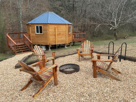 Come “Glamping” with us! These unique open-concept treetop yurts have everything you need to enjoy the great outdoors and camp in comfort! Inside, you’ll find a small kitchenette area, brunch bar seating, a cozy queen bed, and futon, and a relaxed creek side on the spacious deck that overlooks the serene Ponca Creek.
